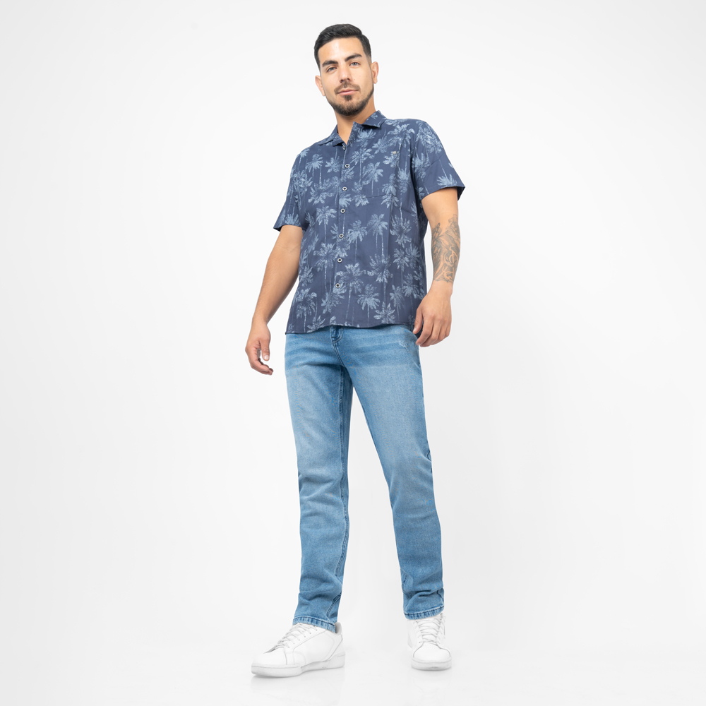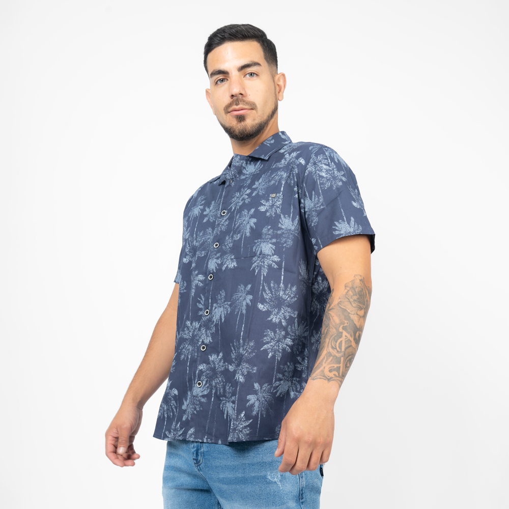 CAMISA M/C IP24/FEATHER POPELINA: AZUL - S