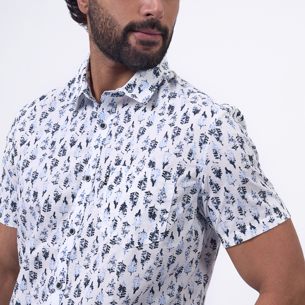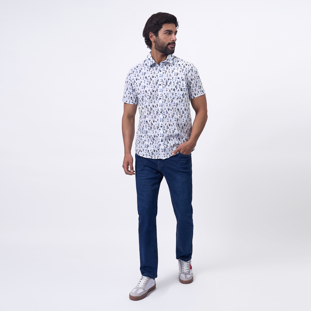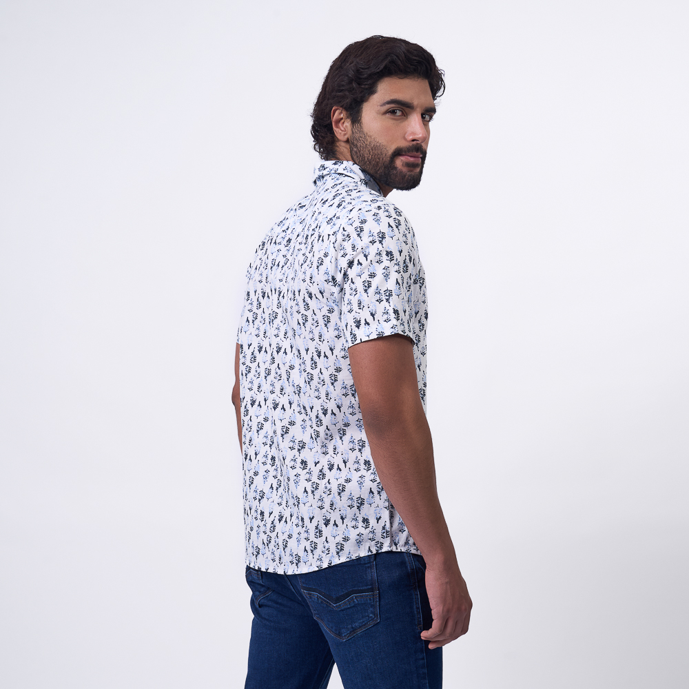 CAMISA M/C JP25/DEBAST POPELINA: BLANCO AZUL - S