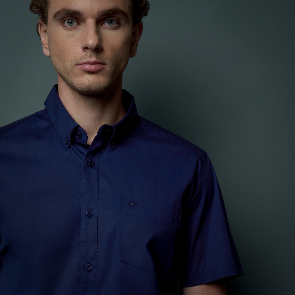 CAMISA M/C NEW HUBERT POPELINA STRECH: AZUL - S